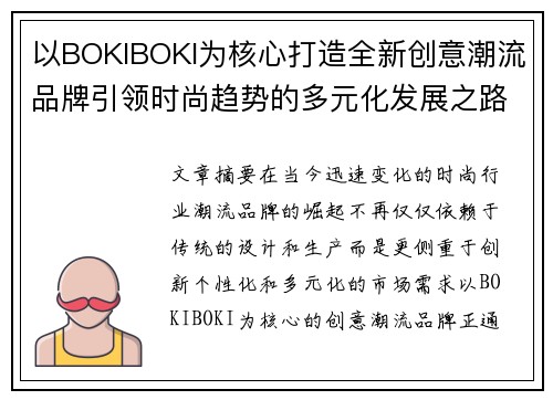 以BOKIBOKI为核心打造全新创意潮流品牌引领时尚趋势的多元化发展之路