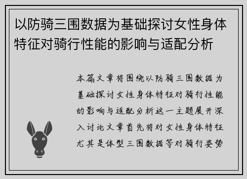 以防骑三围数据为基础探讨女性身体特征对骑行性能的影响与适配分析