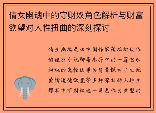倩女幽魂中的守财奴角色解析与财富欲望对人性扭曲的深刻探讨
