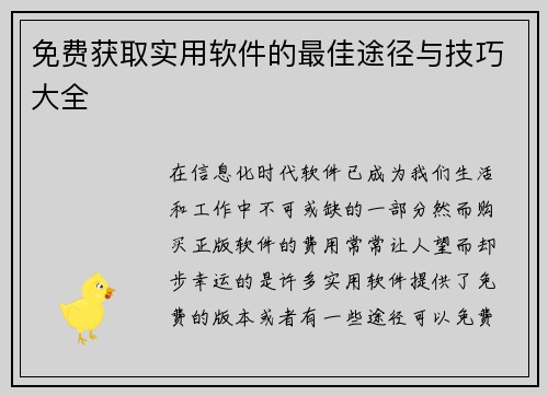 免费获取实用软件的最佳途径与技巧大全